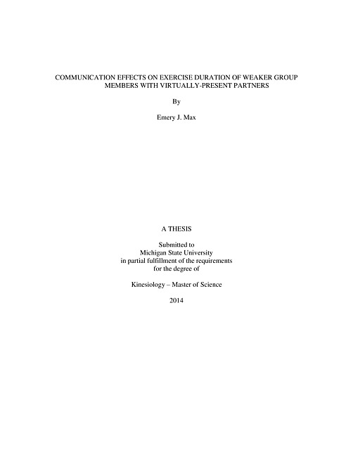 Communication effects on exercise duration of weaker group members with virtually-present partners