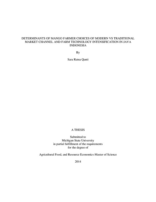 Determinants of mango farmer choices of modern vs traditional market channel and farm technology intensification in Java Indonesia