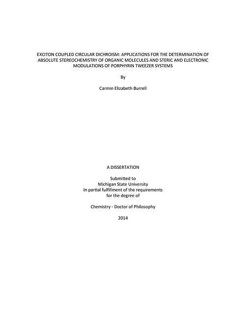 Exciton coupled circular dichroism : applications for the determination of absolute stereochemistry of organic molecules and steric and electronic modulations of porphyrin tweezer systems