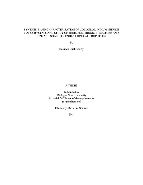 Synthesis and characterization of colloidal indium nitride nanocrystals and study of their electronic structure and size and shape dependent optical properties