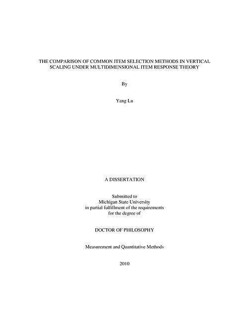 The comparison of common item selection methods in vertical scaling under multidimensional item response theory