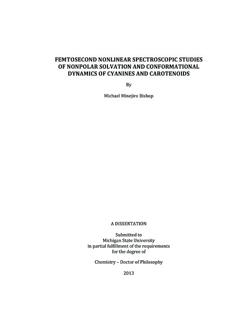 Femtosecond nonlinear spectroscopic studies of nonpolar solvation and conformational dynamics of cyanines and carotenoids