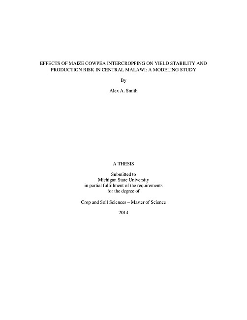 Effects of maize cowpea intercropping on yield stability and production risk in central Malawi : a modeling study