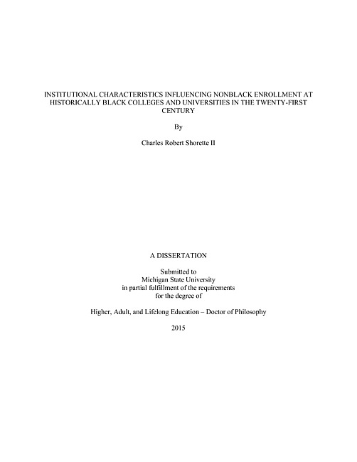 Institutional characteristics influencing nonblack enrollment at historically black colleges and universities in the twenty-first century