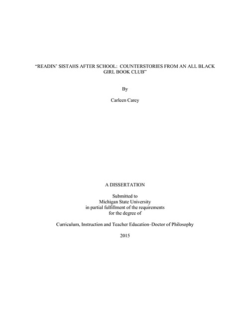 "Readin' sistahs after school : counterstories from an all black girl book club"