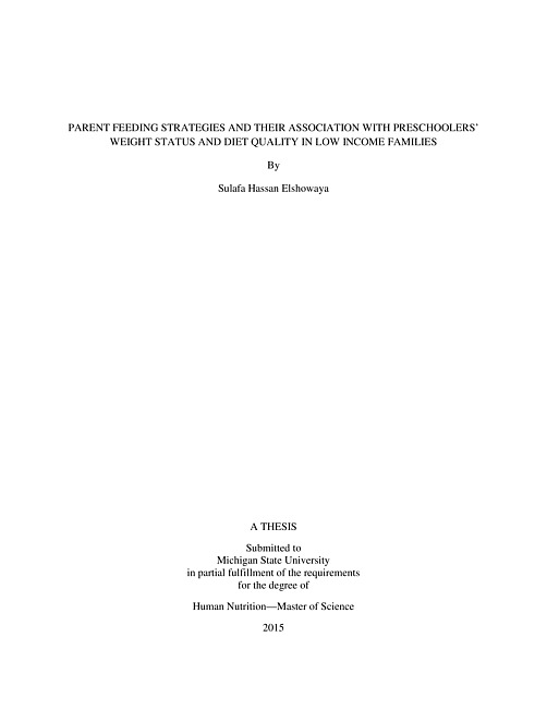 Parent feeding strategies and their association with preschoolers' weight status and diet quality in low income families