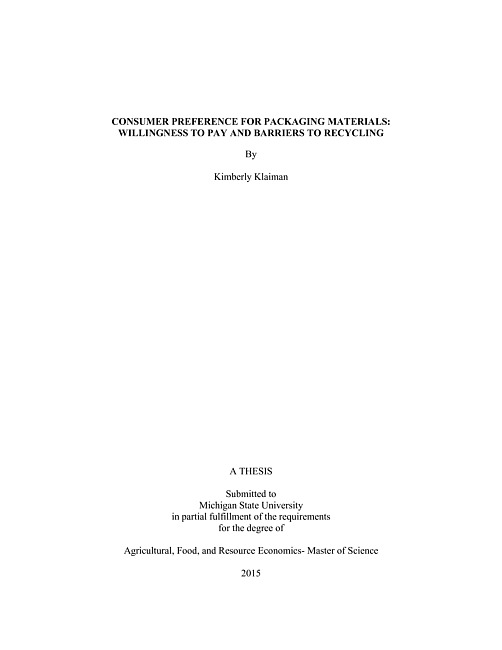 Consumer preference for packaging materials : willingness to pay and barriers to recycling