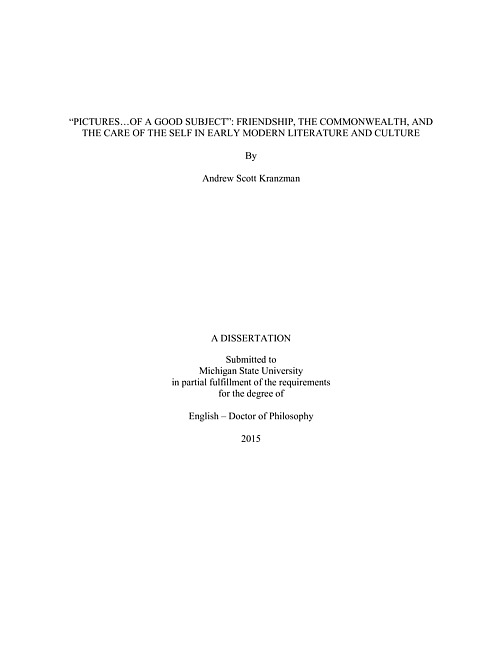 "Pictures...of a good subject" : friendship, the commonwealth, and the care of the self in early modern literature and culture