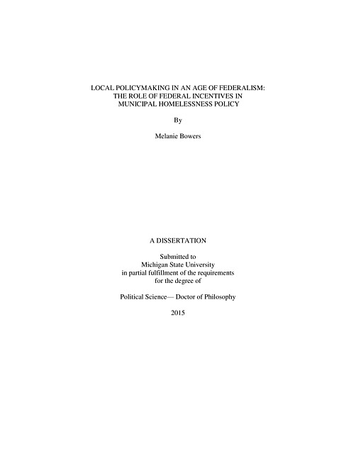 Local policymaking in an age of federalism : the role of federal incentives in municipal homelessness policy