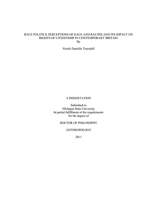Race politics : perceptions of race and racism and its impact on rights of citizenship in contemporary Britain