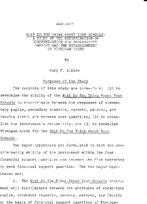 What do you think about your schools : a study of the determination of discrimination and reliability indices and the establishment of Michigan norms