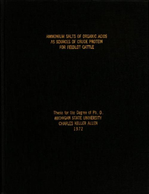 Ammonium salts of organic acids as sources of crude protein for feedlot cattle