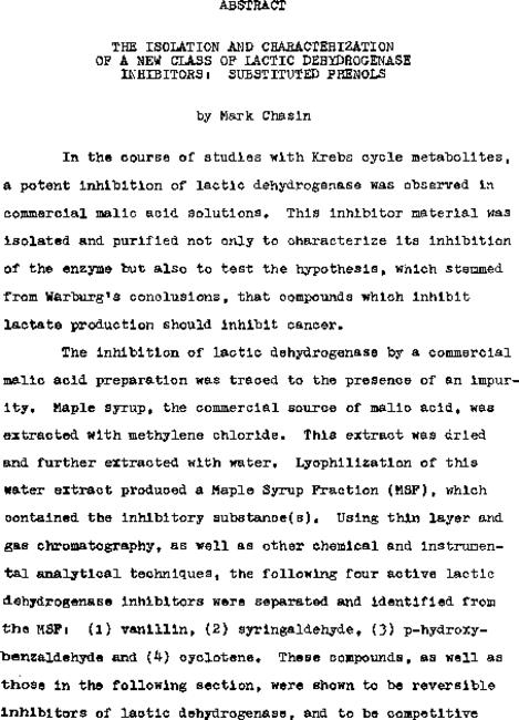 The isolation and characterization of a new class of lactic dehydrogenase inhibitors : substituted phenols