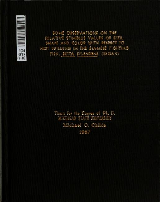 Some observations on the relative stimulus values of size, shape and color with respect to nest building in the Siamese fighting fish, Betta splends (Regan)