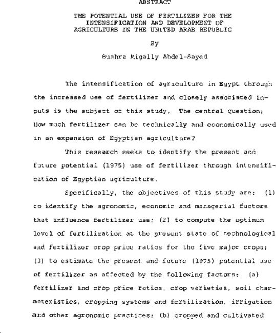 The potential use of fertilizer for the intensification and development of agriculture in the United Arab Republic