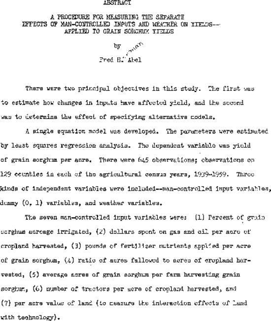 A procedure for measuring the separate effects of man-controlled inputs and weather on yields - applied to grain sorghum yields