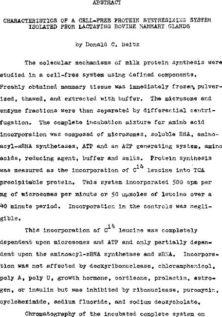 Characteristics of a cell-free protein synthesizing system isolated from lactating bovine mammary glands
