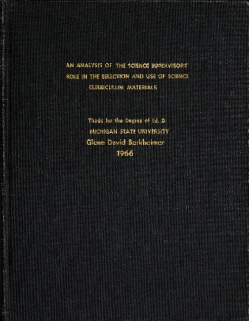 An analysis of the science supervisors' role in the selection and use of science curriculum materials