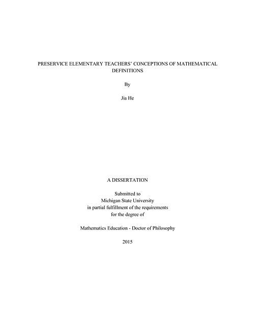 Definitions play a central role in the discipline of mathematics and in teaching and learning mathematics (Vinner 1991). Knowledge of mathematical definitions is an important component of Subject Matter Knowledge for elementary teachers (Ball, Thames, and Phelps, 2008). Teachers’ conceptions of mathematical definitions may affect how they engage in or engage their students in the process of defining (Johnson, Blume, Shimizu, Graysay & Konnova, 2014). However, to date, little research has focused on US teachers’ conceptions of mathematical definitions and even less has examined this issue at the elementary level.In this study, 24 preservice elementary teachers who were in their senior year were interviewed about their understanding of what constitutes a mathematical definition, the distinction between good and bad definitions, and their understanding of the roles of mathematical definitions in mathematics. The interviews were audiotaped and transcribed. Data were analyzed for correctness and general themes were examined using theoretical perspectives found in the literature (e.g., Van Dormolen & Zaslavsky, 2003). This study compares the conceptions of preservice elementary teachers whose teaching major was mathematics (PSTs-M) with the conceptions of preservice teachers whose teaching major was not mathematics (PSTs-N) in order to reveal whether advanced mathematical training contributes to preservice elementary teachers’ understanding of mathematical definitions. The study results indicate that preservice elementary teachers understand quite a few of the necessary and preferred features of mathematical definitions which are suggested in the literature (e.g., precise). However, they also demonstrated limited understanding of how to distinguish a necessary feature from a preferred feature (e.g., noncircularity). Moreover, preservice elementary teachers had a few misconceptions about mathematical definitions. The most common misconceptions include that mathematical definitions are expected to be written in the format “A is B” and that mathematical definitions could be used to name a property/procedure/theorem. Throughout the whole interview, only one preservice elementary teacher demonstrated the idea that no mathematical definition needed to be proved. PSTs’ misconceptions of mathematical definitions contributed to their incorrect understanding of the relationship between mathematical definitions and proofs. Also, PSTs-M’s idea of mathematical definitions as a meta level concept was not that different from the idea of PSTs-N. The results of this study suggest that current instruction in mathematics courses for preservice elementary teachers is not very effective in preventing the formation of misconceptions regarding mathematical definitions. The finding that PSTs-M’s and PSTs-N's conceptions of mathematical definitions were similarly problematic provides further evidence that simply going through advanced training in mathematics does not automatically improve preservice elementary teachers’ understanding of mathematical definitions. This indicates that the nature and roles of mathematical definitions need to be addressed more directly and more often in teacher education programs and that assessment needs to be designed as well.