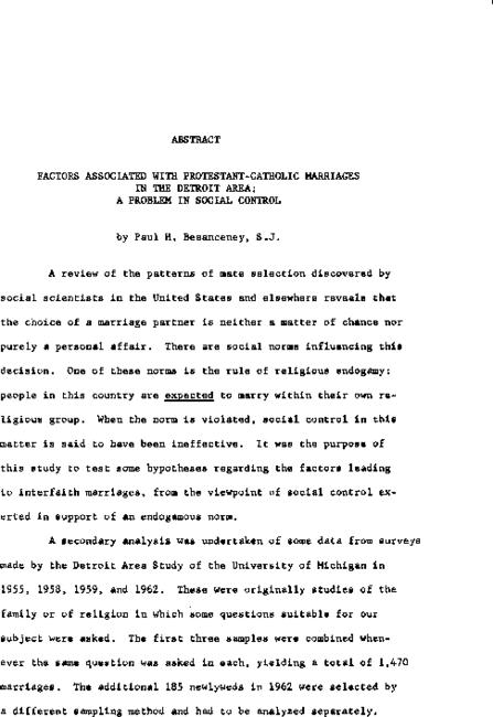 Factors associated with Protestant-Catholic marriages in the Detroit area : a problem in social control