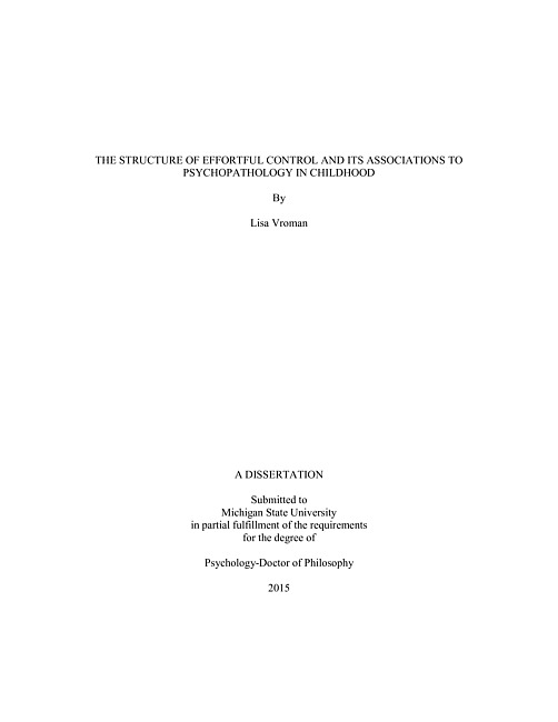 The current literature investigating the structure of effortful control (EC) is mixed, as the results vary by the methods utilized. Much of the literature on the relation between EC and psychopathology indicates low levels of EC are most strongly associated with higher levels of psychopathology. Preliminary evidence, however, suggests a nonlinear association exists between EC and positive psychological outcomes. The aims of this study were twofold: 1) Examine the structure of trait EC assessed via parent report, experimenter ratings and objective coding of child behavior in response to lab tasks, and attentional control measures, and 2) Examine concurrent and predictive linear and nonlinear associations between EC and two common dimensions of psychopathology (externalizing and internalizing symptoms) in a sample (n = 277) of children between 3-7 years of age. The results generally support a unidimensional structure of trait EC in young children, with modest-to-moderate convergent validity between parent report, experimenter ratings, objective coding of child behavior, and attentional control measures providing additional support for this model. Trait EC (across most methods of assessment) exhibited concurrent, as well as a few prospective predictive relations with maternal reported externalizing and internalizing behavior problems on the CBCL.