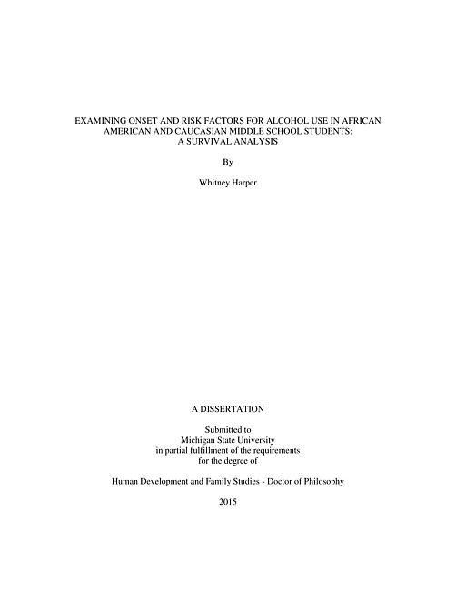Examining onset and risk factors for alcohol use in African American and caucasian middle school students : a survival analysis