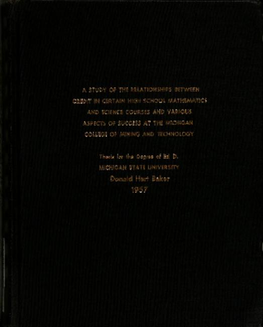 A study of the relationships between credit in certain high school mathematics and science courses and various aspects of success at the Michigan College of Mining and Technology