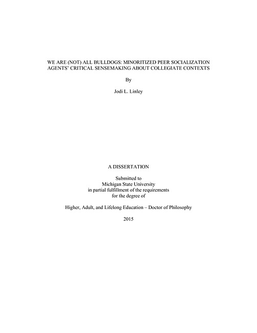 We are (not) all Bulldogs : minoritized peer socialization agents' critical sensemaking about collegiate contexts