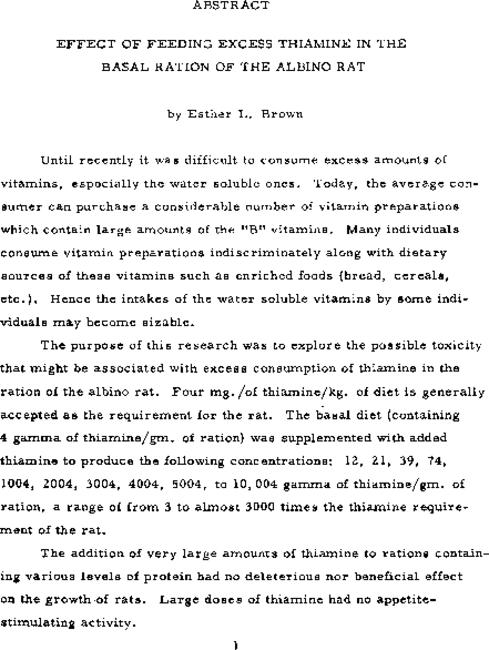 Effect of feeding excess thiamine in the basal ration of the albino rat