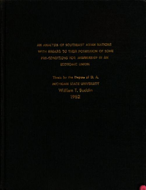 An analysis of Southeast Asian nations with regard to their possession of some pre-conditions for membership in an economic union