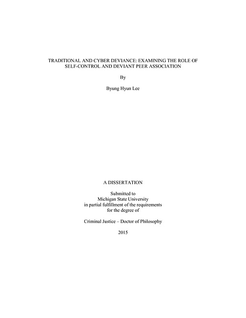 Technology has brought considerable benefits to society and individuals, particularly creating changes in how young people communicate with each other. Despite the advantages of technology, there are also opportunities for offending and risks for victimization in cyberspace. With the widespread access to and use of computer-mediated devices, children and youth nowadays are increasingly exposed to a variety of deviant content and individuals on-line.Although prior studies have examined the factors associated with deviant behaviors on-line, the majority of them have relied on college student samples and U.S. population in examining specific forms of cyber deviance and crime. To address these limitations, the current study sought to examine theoretical and demographic correlates of real world and cyber deviance in general and specific forms, using a South Korea adolescent sample. Specifically, the current study examined the applicability of the General Theory of Crime (Gottfredson & Hirschi, 1990) and the Social Learning Theory (Akers, 1998) in the context of cyber deviance. Furthermore, this study investigated the potential link between on-line and off-line environment by exploring the correlates of real world and cyber deviance. Finally, the current study sought to explore the mediating and conditioning relationship between low self-control, deviant peer association and deviance. Implications for research and policy are discussed.