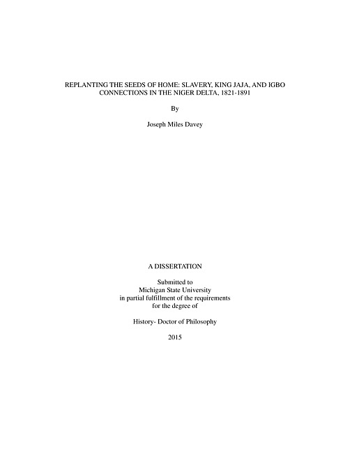 Replanting the seeds of home : slavery, King Jaja, and Igbo connections in the Niger Delta, 1821-1891