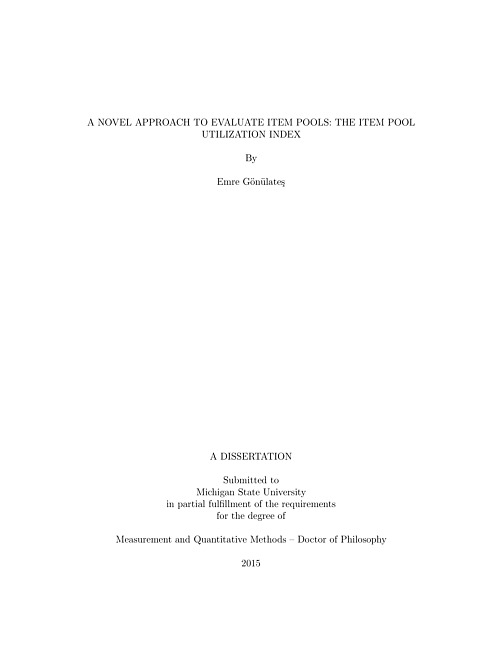 A novel approach to evaluate item pools : the Item Pool Utilization Index