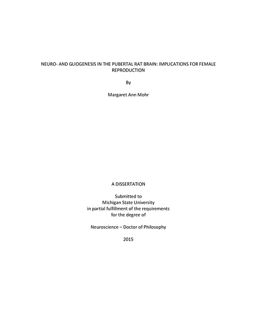 Neuro- and gliogenesis in the pubertal rat brain : implications for female reproduction
