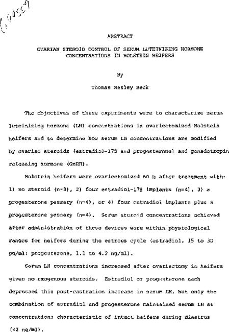 Ovarian steroid control of serum luteinizing hormone concentrations in Holstein heifers