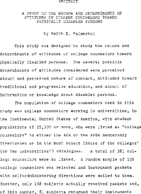 A study of the nature and determinants of attitudes of college counselors toward physically disabled persons