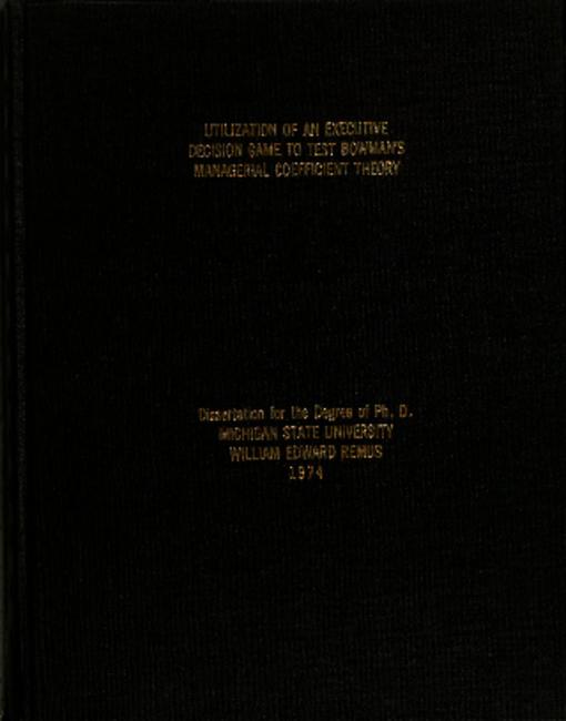 Utilization of an executive decision game to test Bowman's managerial coefficient theory
