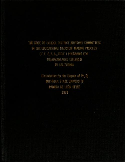 The role of school district advisory committees in the educational decision-making process of E.S.E.A., Title I programs for disadvantaged children in California