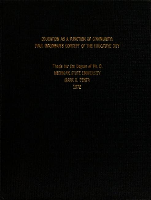 Education as a function of community : Paul Goodman's concept of the educative city