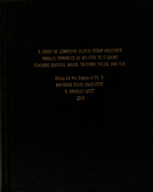 A study of computer scored group Holtzman inkblot variables as related to student teaching success, Major teaching fields, and sex