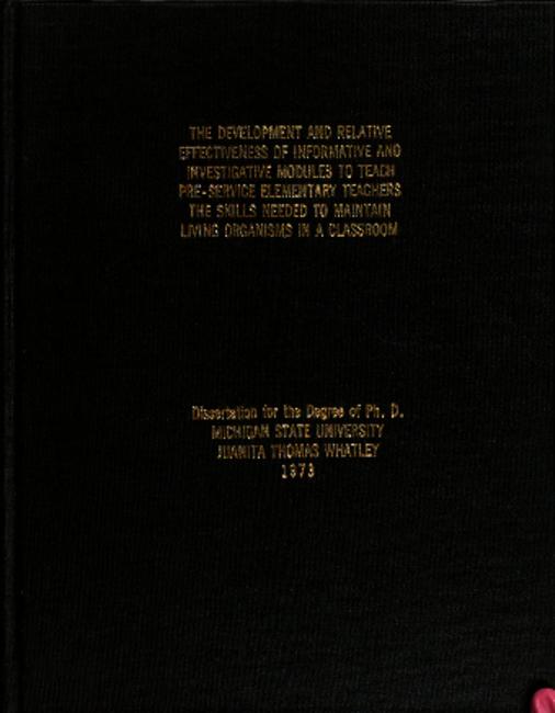 The development and relative effectiveness of informative and investigative modules to teach pre-service elementary teachers the skills needed to maintain living organisms in a classroom