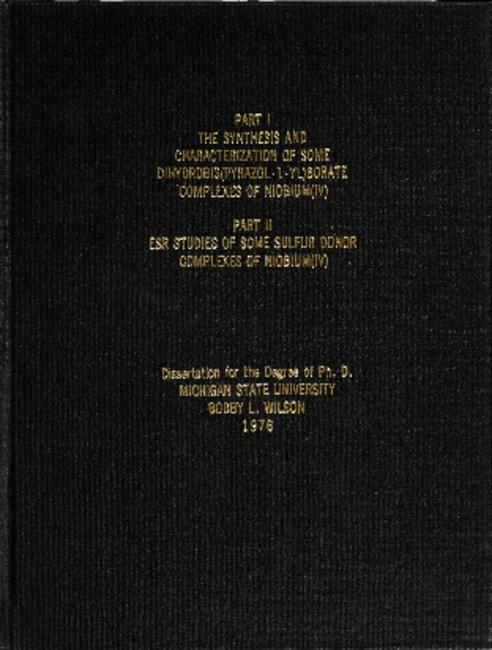Part I: The synthesis and characterization of some dihydrobist(pyrazol-l-l-y1)borate complexes of niobium (IV) ; Part II: ESR studies of some sulfar donar complexes of niobium (IV)