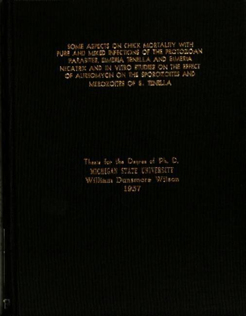 Some aspects on chick mortality with pure and mixed infections of the protozoan parasites, Eimeria tenella and Eimeria necatrix and in vitro studies on the effect of aureomycin on the sporozoites and merozoites of E. tenella