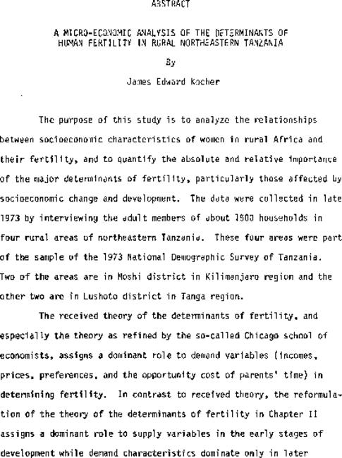 A micro-economic analysis of the determinants of human fertility in rural northeastern Tanzania
