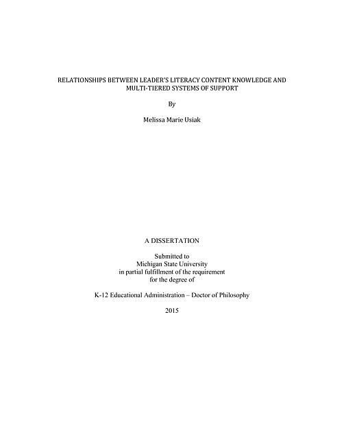 Relationships between leader's literacy content knowledge and multi-tiered systems of support