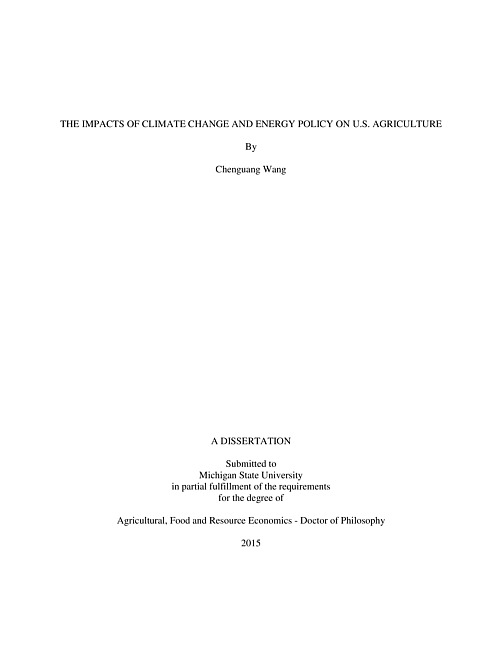 Agriculture is vulnerable to both natural and human-made changes. In the past few decades, changes in climate and energy policy have transformed U.S. agricultural production. From the perspective of economics, I am interested in the impacts of climate change and energy policy on agriculture, which are intensively investigated in my dissertation essays. In my first essay, I measure the impacts of climate change and adaptation on U.S. agriculture. Climate impact assessment models that ignore adaptation and technological change may overestimate the damage or underestimate the benefits from climate change. To address this issue, I investigate the impacts of climate change on farmland value accounting for adaptation, such as land-use change and technological change. My joint structural econometric model of farmland value and crop choices captures the complex interactions between crop prices, crop biological and physiological attributes (e.g., stomata density and root depth) that are correlated with crop stress resistance, and soil and climate characteristics. Thus, my model also allows me to measure the economic values of a series of adaptation strategies and quantify the heterogeneous impacts of climate change due to different initial conditions. My research has far-reaching applications for the agricultural industry, university extensions, and government agencies in guiding crop research and development, identifying vulnerable regions, and prioritizing funding allocation in adaptation to climate change.In my second essay, I determine the land-use change induced by the demand for bioenergy crops. Although deforestation is a concern for biomass promotion, empirical evidence is widely lacking. In this paper, I empirically estimate land-use changes associated with an emerging biomass market and a newly implemented biomass subsidy. The opening of a large-scale biomass processing plant in Missouri and the subsequent Biomass Crop Assistance Program shift the local demand for bioenergy crops and create heterogeneous supply incentives for farmers near to versus far away from the plant. Using a difference-in-differences approach, I find that the plant opening slightly induces land switching from forest to food crops, while the BCAP subsidy program not only significantly induces bioenergy crop supply, but also discourages deforestation, illustrating the environmental gains from the policy.Collectively, my dissertation provides guidance to policy makers that hope to promote sustainable agriculture in a rapidly changing environment.
