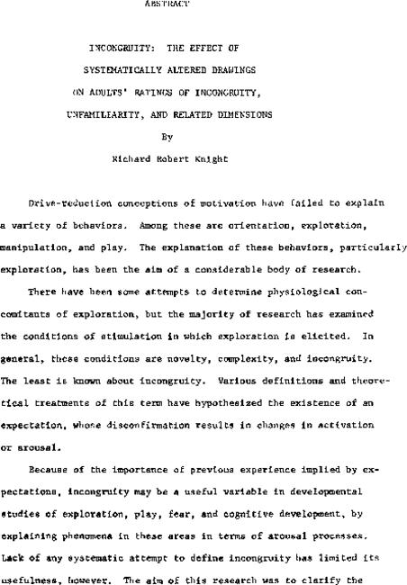 Incongruity : the effect of systematically altered drawings on adults' ratings of incongruity, unfamiliarity, and related dimensions