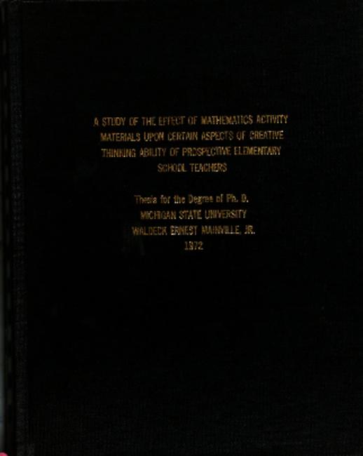 A study of the effect of mathematics activity materials upon certain aspects of creative thinking ability of prospective elementary school teachers