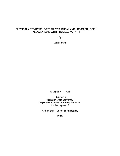 Physical activity self-efficacy in rural and urban children : associations with physical activity