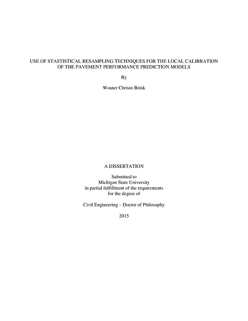 The performance prediction models in the Pavement-ME design software are nationally calibrated using in-service pavement material properties, pavement structure, climate and truck loadings, and performance data obtained primarily from the Long-Term Pavement Performance Program (LTPP). The nationally calibrated models may not perform well if the inputs and performance data used to calibrate those do not represent the local design and construction practices. Therefore, before implementing the new M-E design procedure at a local level, each state highway agency should evaluate how well the nationally calibrated performance models predict the measured field performance. The local calibration of the Pavement-ME performance models are recommended to improve the performance prediction capabilities to reflect the unique conditions and design practices. During the local calibration process, the traditional calibration techniques (split sampling) may not necessarily provide adequate results when limited number of pavement sections are available. Consequently, there is a need to employ statistical and resampling methodologies that are more efficient and robust for model calibrations given the data related challenges encountered by State Highway Agencies. The main objectives of this study were to demonstrate the local calibration of the rigid and flexible pavement performance models and compare the calibration results for different resampling techniques. Additionally, the input and measured performance data collection efforts were established for Michigan. For flexible pavements - alligator cracking, rutting, thermal cracking and IRI performance models were calibrated for Michigan conditions and for rigid pavements - transverse cracking, faulting and IRI performance models were calibrated to reflect Michigan conditions. Several different sampling techniques and dataset options were utilized to calibrate each of the models. These datasets included combinations of pavement types such as newly reconstructed, rehabilitation and LTPP sections. Initially, the models were calibrated using the entire dataset, then split sampling was performed. Due to limitations of these techniques, repeated split sampling, bootstrapping and jackknifing sampling techniques were used to randomly select pavement sections for the local calibration. The bootstrap is a nonparametric and robust resampling technique for estimating standard errors and confidence intervals of a statistic. The main advantage of bootstrapping is that model parameters estimation is possible without making distribution assumptions. The major contribution of this work was to demonstrate the use resampling techniques to locally calibrate the performance prediction models for newly constructed and rehabilitated pavements. The results of local calibration and validation of various models show that the locally calibrated model significantly improved the performance predictions for Michigan conditions. The local calibration coefficients for all performance models are documented. Additionally, recommendations for future calibrations are presented to improve the current local calibration.